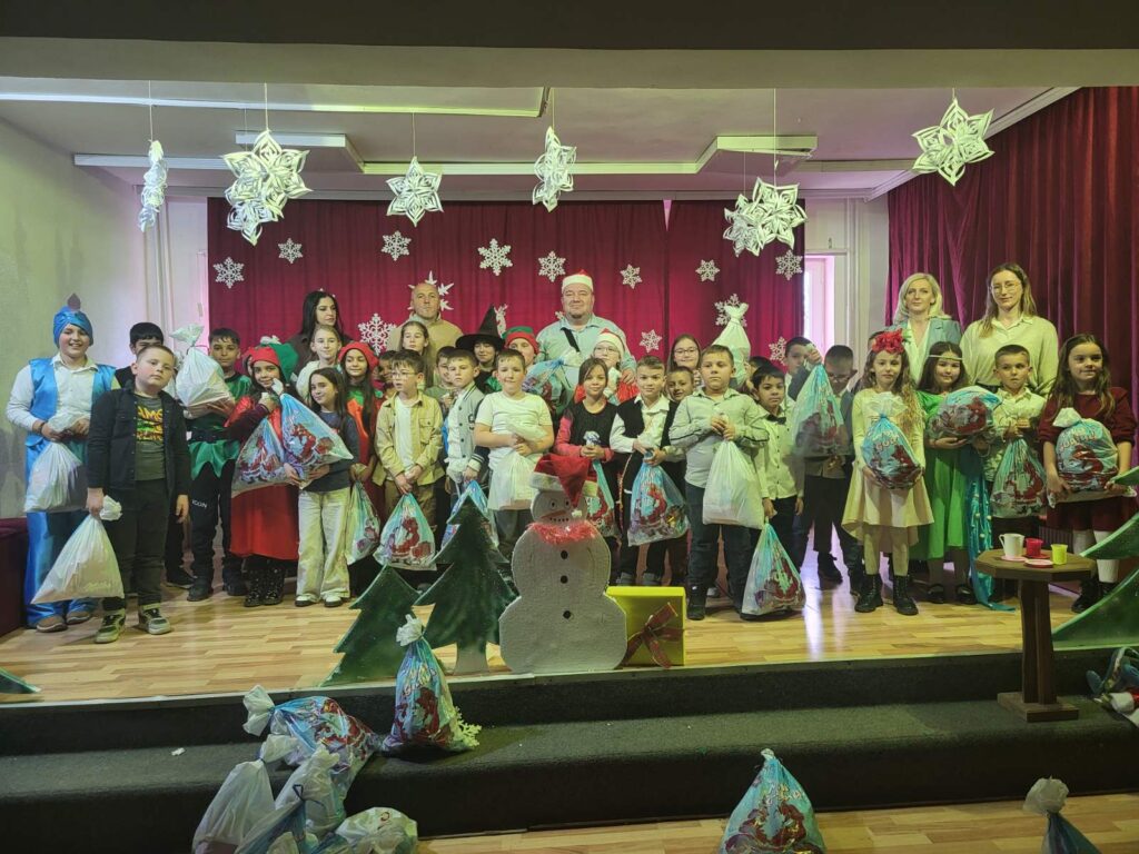 Ученици од 1. до 4. разреда су, данас, 26. децембра од 11ч, приредили новогодишњи програм у сали матичне школе. У новогодишњој представи “Деда Мраз у свету маште” уживали су родитељи, деке и баке, учитељи, предшколци па и сами ученици. Након приредбе ученицима су подељени пакетићи а гости су посетили новогодишњи штанд на којем су могли да купе понешто од дечје радиности.
