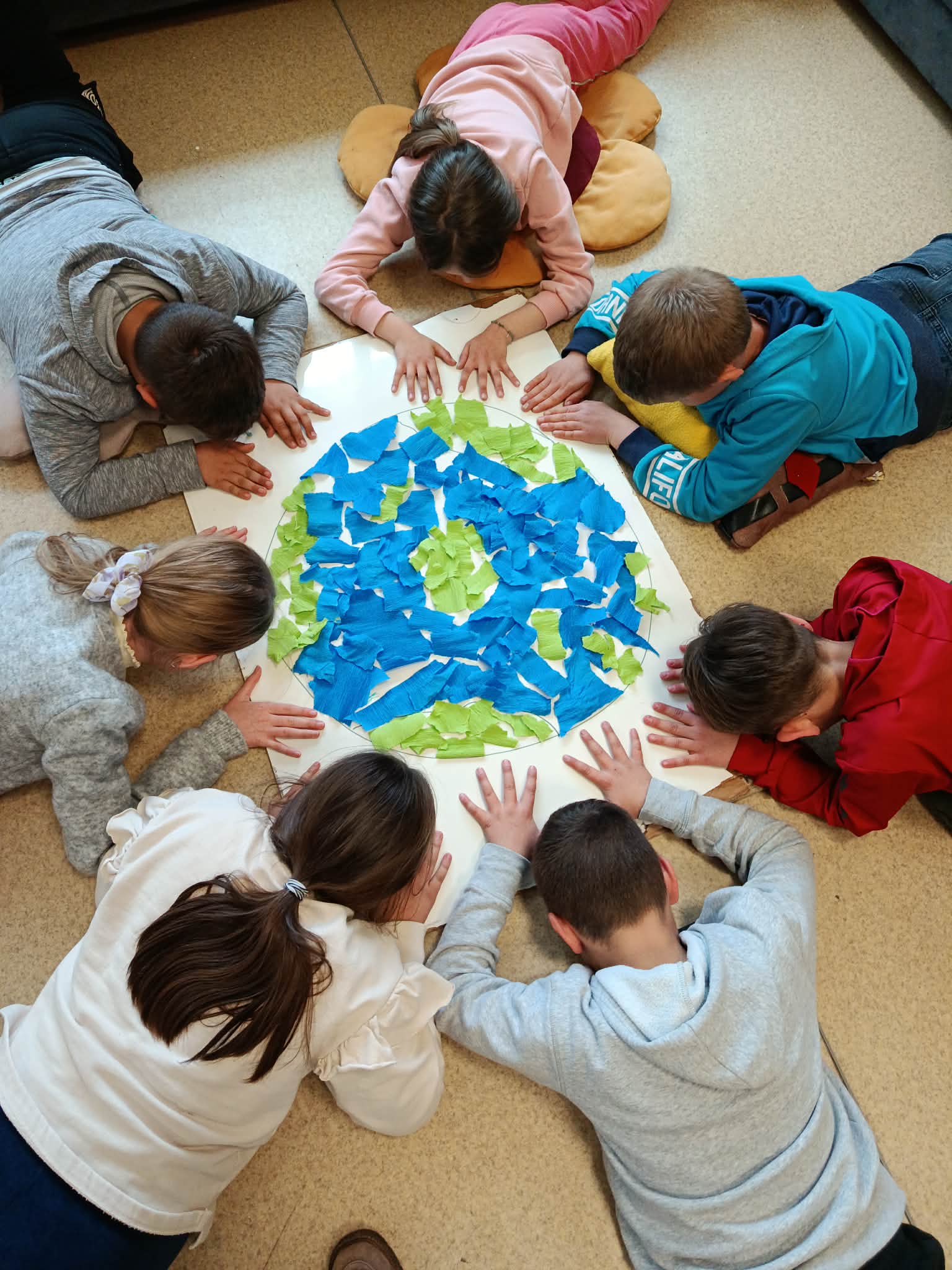 Ученици су са великим интересовањем учествовали у изради радова од креп папира, правећи мотиве планете Земље, дрвећа, цвећа и других елемената из природе. Кроз рад су показали креативност, машту и спремност на сарадњу.